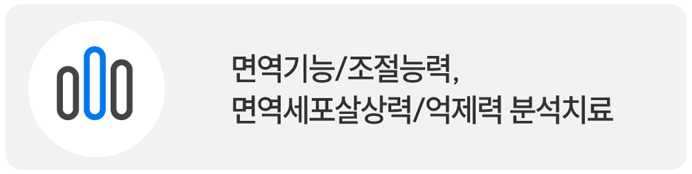 면역기능, 면역조절능력, 면역세포의 살상능력, 면역 세포 억제력 분석